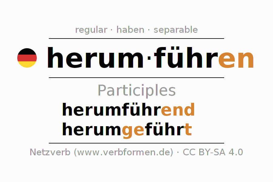 The verb herumführen fully conjugated in all persons and numbers in the Participle Present Perfect