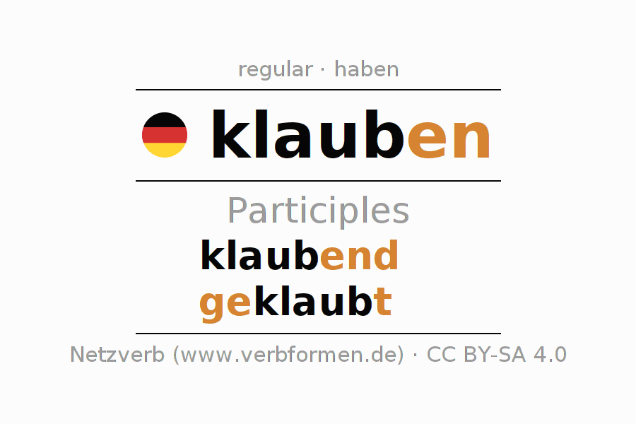 The verb klauben fully conjugated in all persons and numbers in the Participle Present Perfect