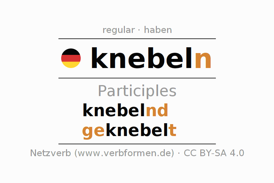 The verb knebeln fully conjugated in all persons and numbers in the Participle Present Perfect