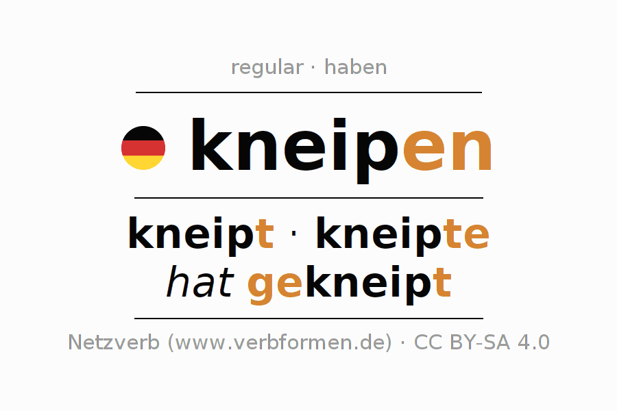 The participles of kneipen (tipple, drinking) are: kneipend, gekneipt.