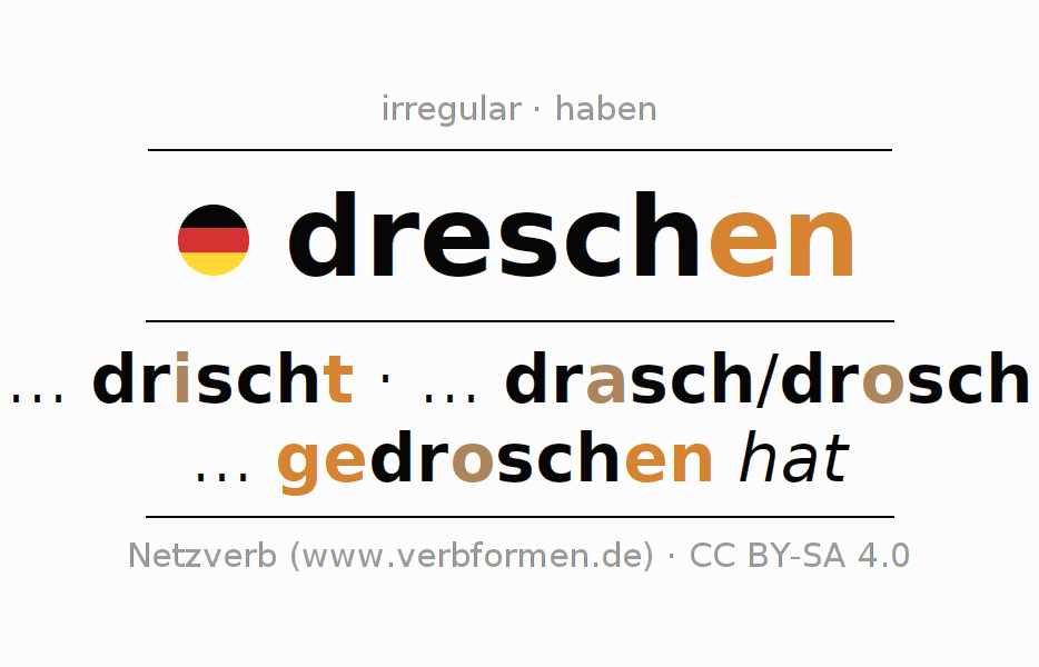 - ... wir dräschen/dröschen (1st PersonPlural)