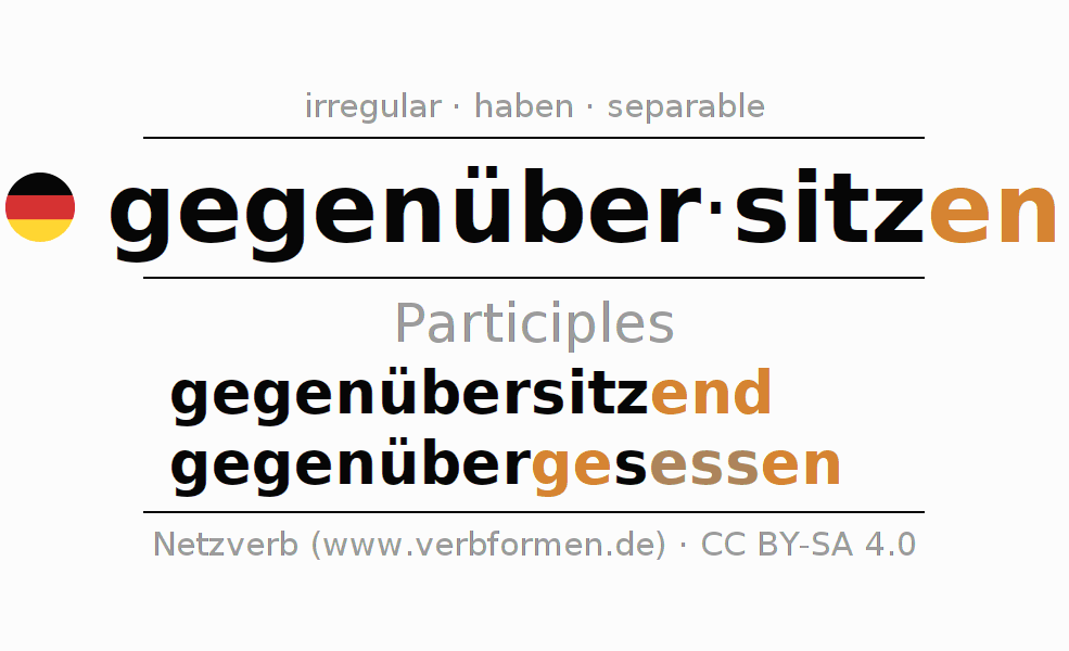 The verb gegenübersitzen (hat) fully conjugated in all persons and numbers in the Participle Present Perfect