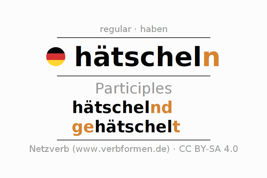 The conjugation of hätscheln in Participle Present Perfect part of speech Active is hätschelnd, gehätschelt.The conjugation corresponds to certain grammatical rules. Likewise the requirements for the conjugation of the simple verb forms of hätscheln in Participle. Comments ☆