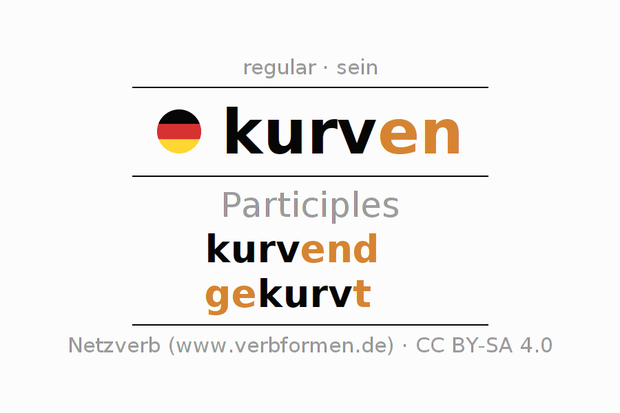 The conjugation of kurven in Participle Present Perfect part of speech Active is kurvend, gekurvt.The conjugation corresponds to certain grammatical rules. Likewise the requirements for the conjugation of the simple verb forms of kurven in Participle. Comments ☆