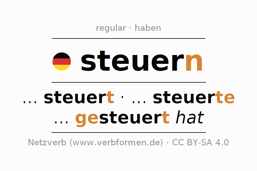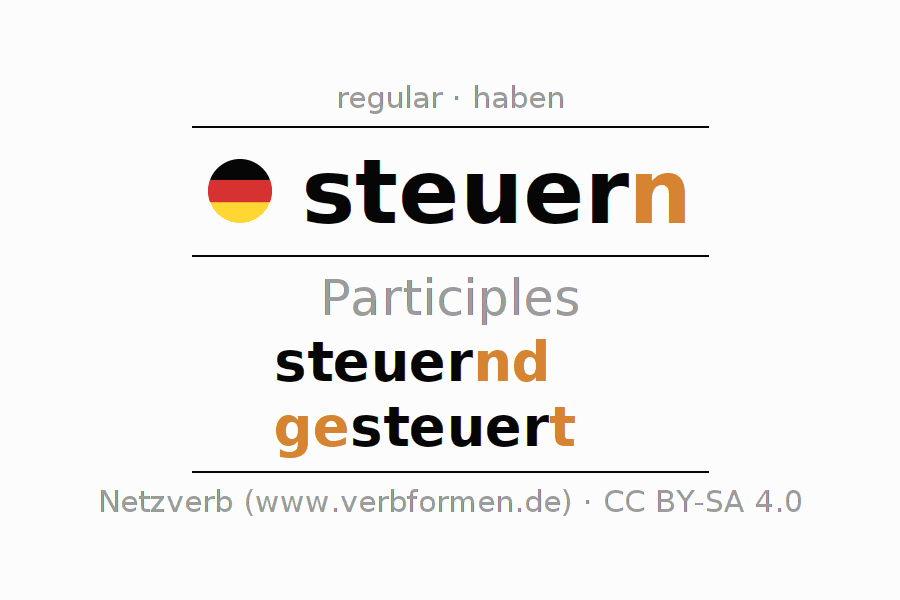 The conjugation of steuern in Participle Present Perfect part of speech Active is steuernd, gesteuert.The conjugation corresponds to certain grammatical rules. Likewise the requirements for the conjugation of the simple verb forms of steuern in Participle. Comments ☆