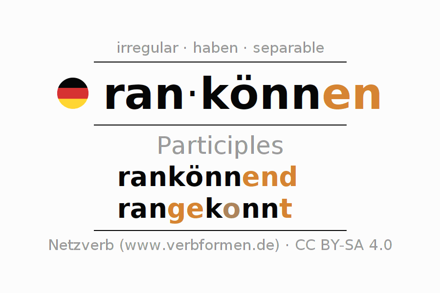The participles of rankönnen (approach, be able to approach) are: rankönnend, rangekonnt.