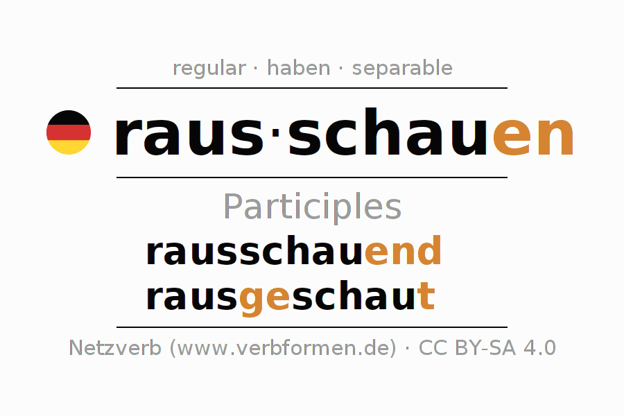The verb rausschauen fully conjugated in all persons and numbers in the Participle Present Perfect