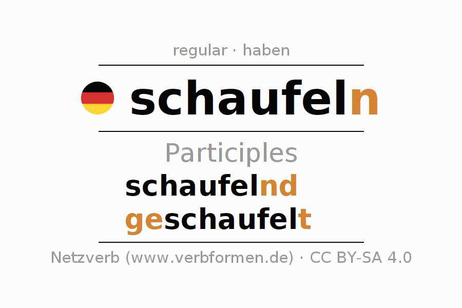 The verb schaufeln fully conjugated in all persons and numbers in the Participle Present Perfect