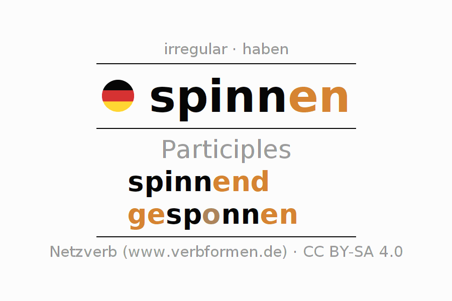 The verb spinnen fully conjugated in all persons and numbers in the Participle Present Perfect