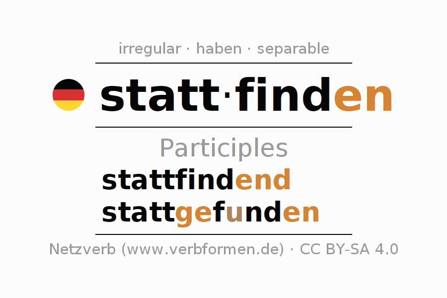 The participles of stattfinden (take place, happen) are: stattfindend, stattgefunden.