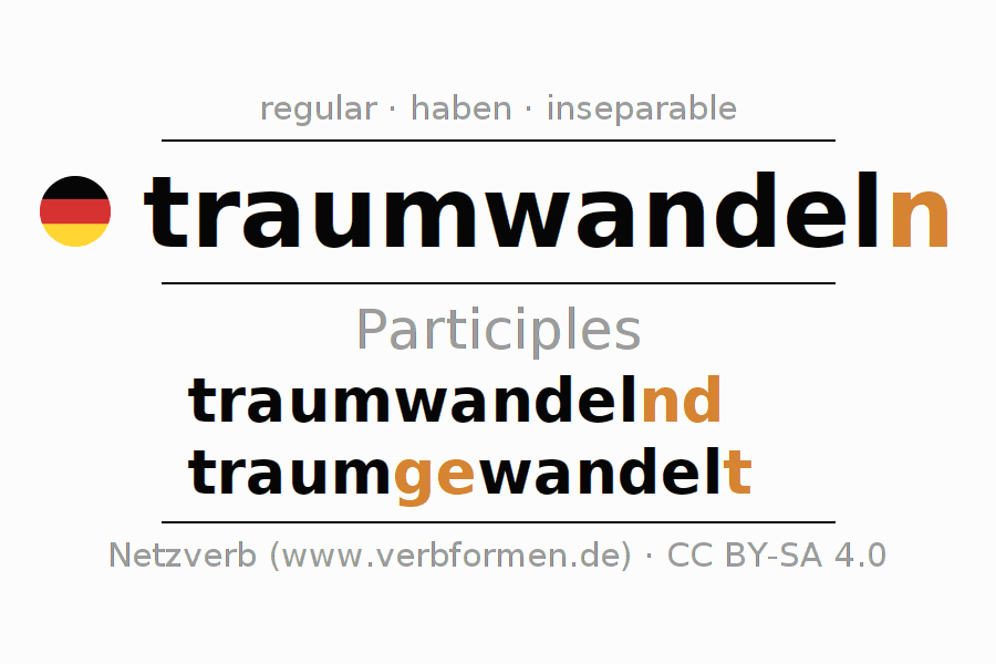 The verb traumwandeln fully conjugated in all persons and numbers in the Participle Present Perfect