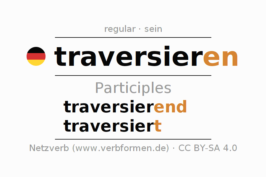 The participles of traversieren (traverse, cross horizontally) are: traversierend, traversiert.