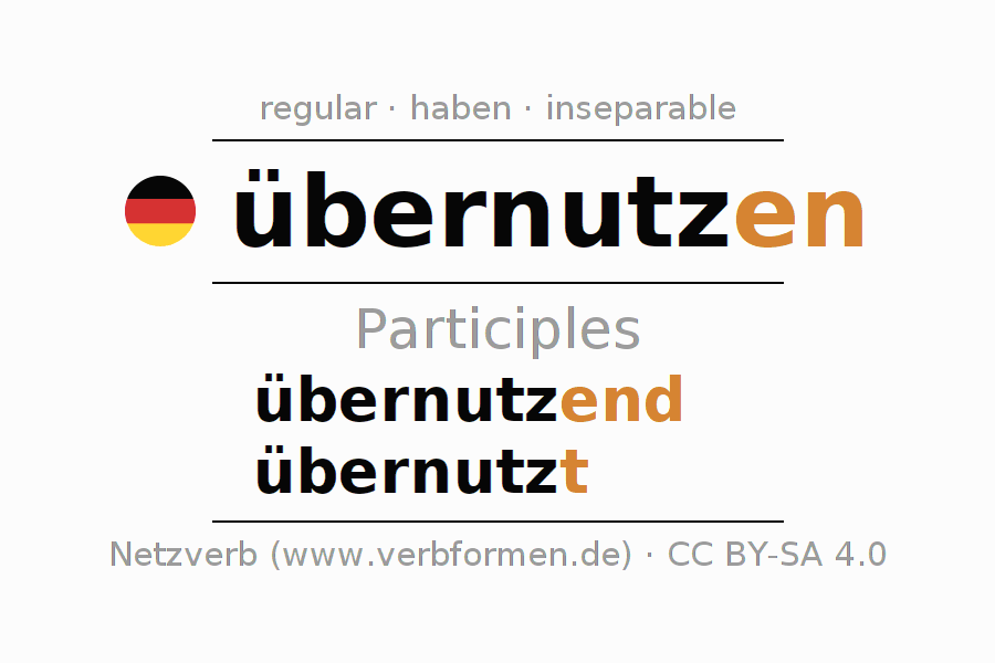 The verb übernutzen fully conjugated in all persons and numbers in the Participle Present Perfect