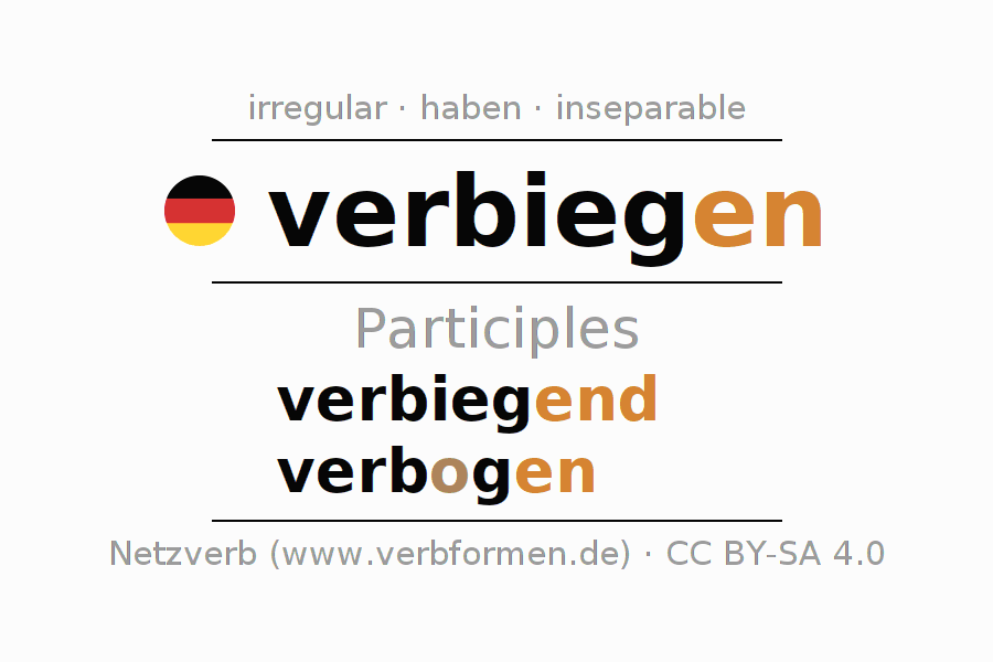 The verb verbiegen fully conjugated in all persons and numbers in the Participle Present Perfect