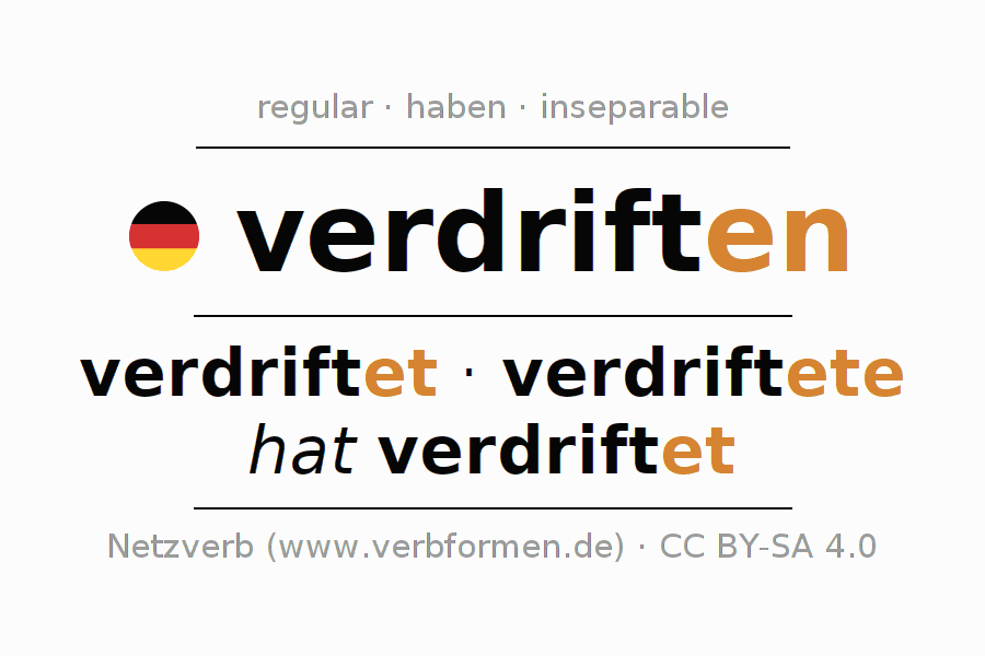 The verb verdriften fully conjugated in all persons and numbers in the Participle Present Perfect