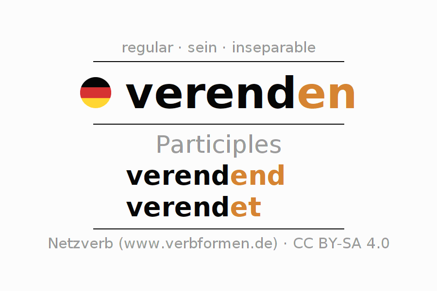 The verb verenden fully conjugated in all persons and numbers in the Participle Present Perfect