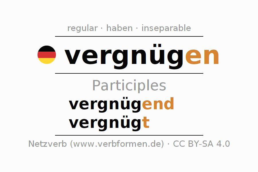 The participles of vergnügen (please, amuse) are: vergnügend, vergnügt.
