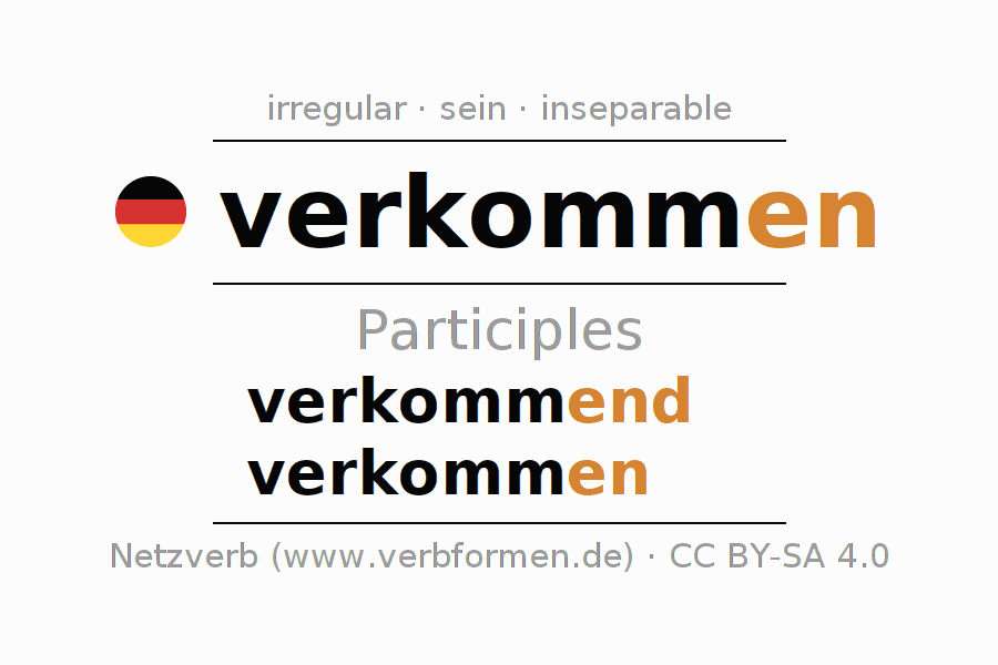 The participles of verkommen (deteriorate, decay) are: verkommend, verkommen.