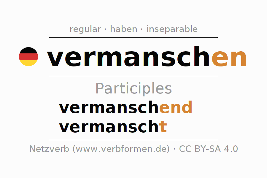 The participles of vermanschen (mash up, blend) are: vermanschend, vermanscht.