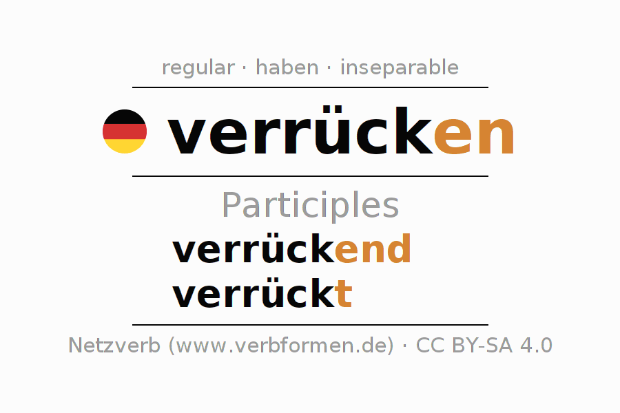 The verb verrücken fully conjugated in all persons and numbers in the Participle Present Perfect