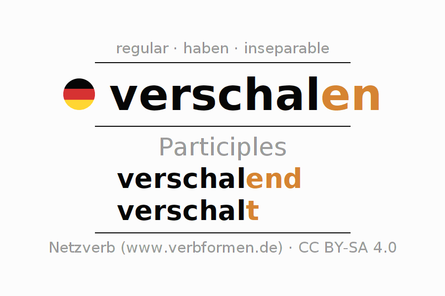 The verb verschalen fully conjugated in all persons and numbers in the Participle Present Perfect