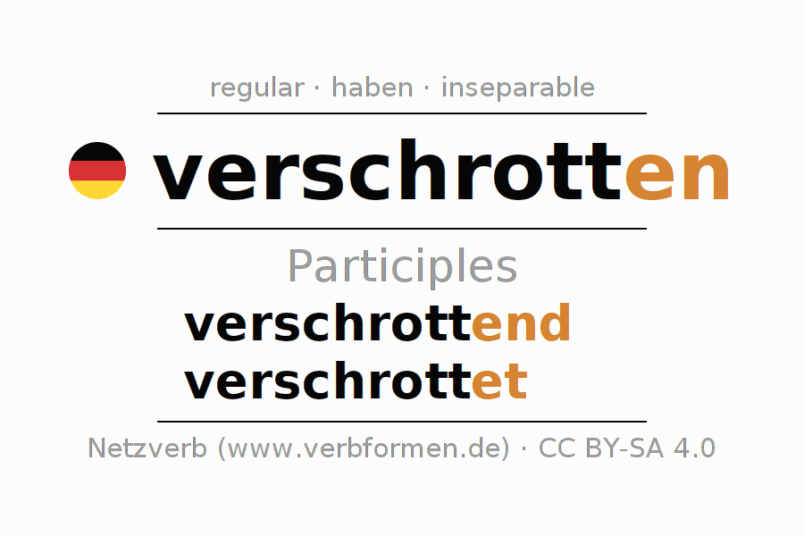 The verb verschrotten fully conjugated in all persons and numbers in the Participle Present Perfect