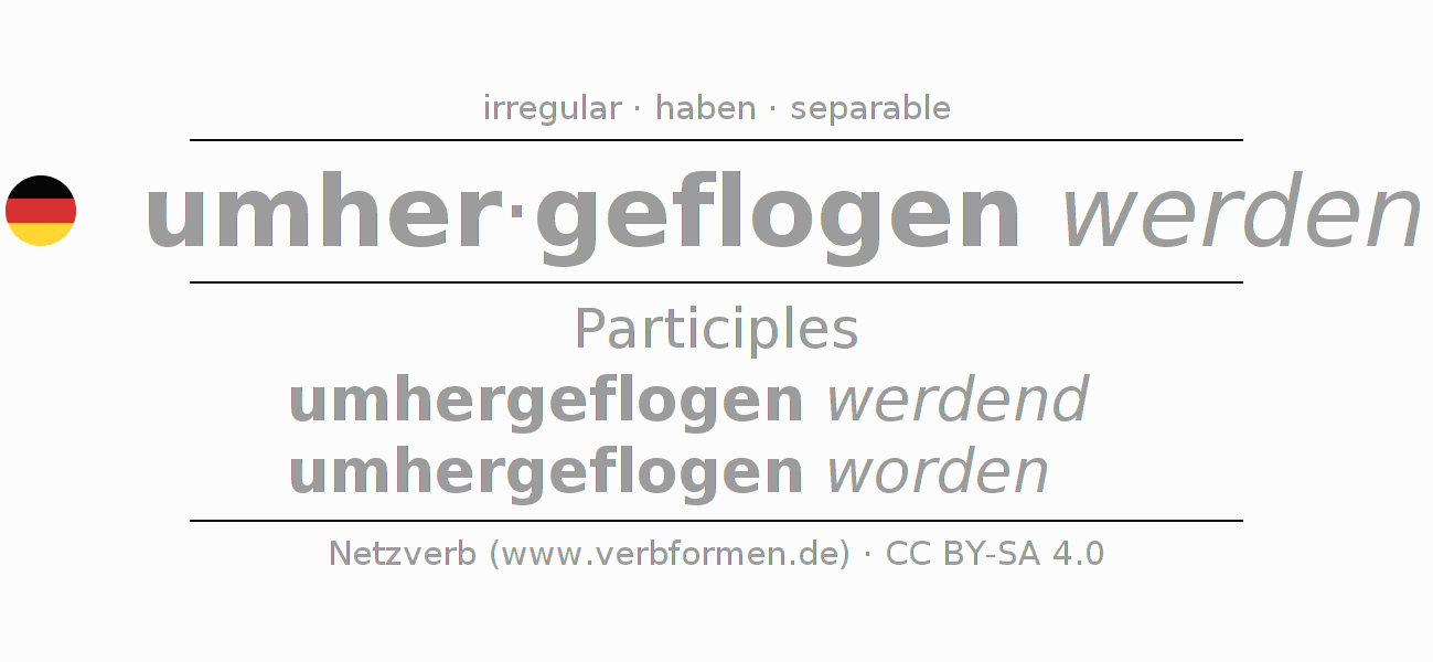 Participle of German verb umherfliegen (hat) 〈Passive〉 〈Interrogative〉
