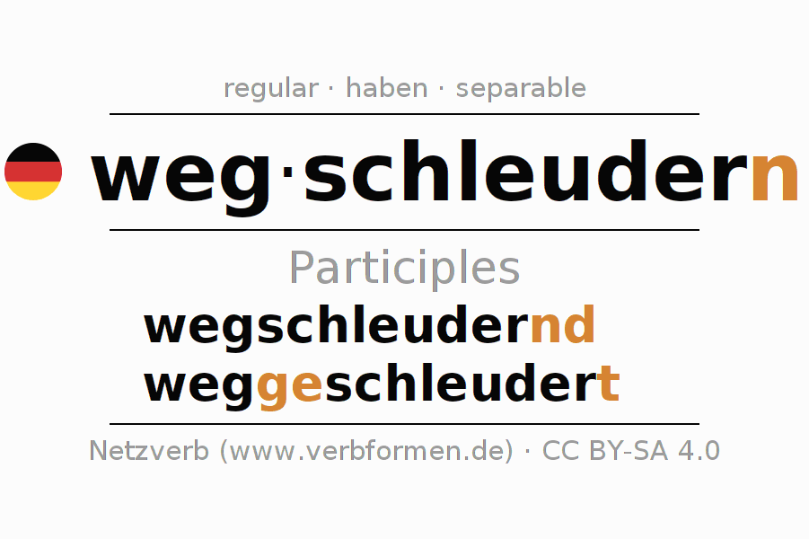The verb wegschleudern fully conjugated in all persons and numbers in the Participle Present Perfect