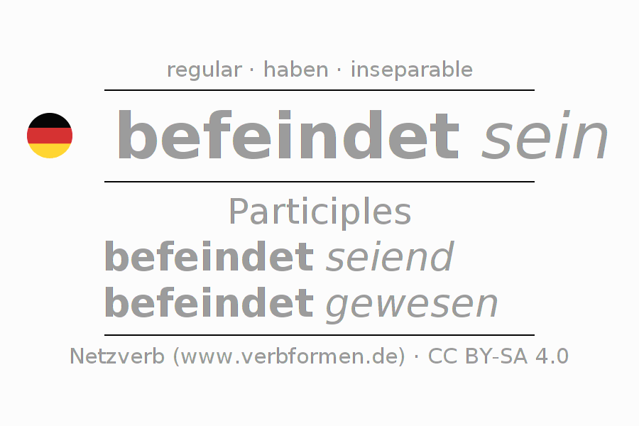 The conjugation of befeinden in Participle Present Perfect part of speech Statal Passive is befeindet seiend, befeindet gewesen.The conjugation corresponds to certain grammatical rules. Likewise the requirements for the conjugation of the simple verb forms of befeinden in Participle. Comments ☆