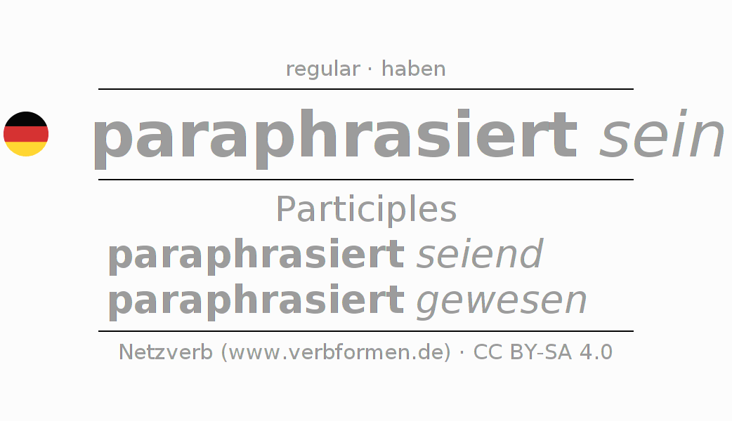 The verb paraphrasieren fully conjugated in all persons and numbers in the Participle Present Perfect