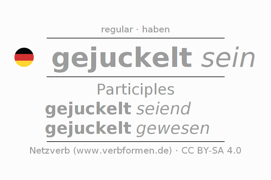 The conjugation of juckeln in Participle Present Perfect part of speech Statal Passive is gejuckelt seiend, gejuckelt gewesen.The conjugation corresponds to certain grammatical rules. Likewise the requirements for the conjugation of the simple verb forms of juckeln in Participle. Comments ☆
