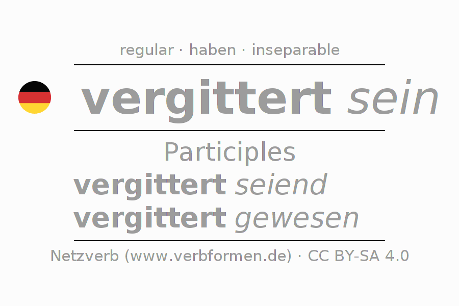 The conjugation of vergittern in Participle Present Perfect part of speech Statal Passive is vergittert seiend, vergittert gewesen.The conjugation corresponds to certain grammatical rules. Likewise the requirements for the conjugation of the simple verb forms of vergittern in Participle. Comments ☆