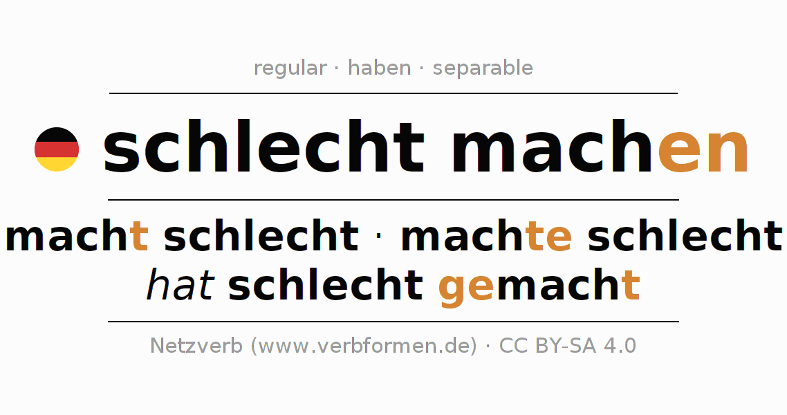 macht schlecht · machte schlecht · hat schlecht gemacht