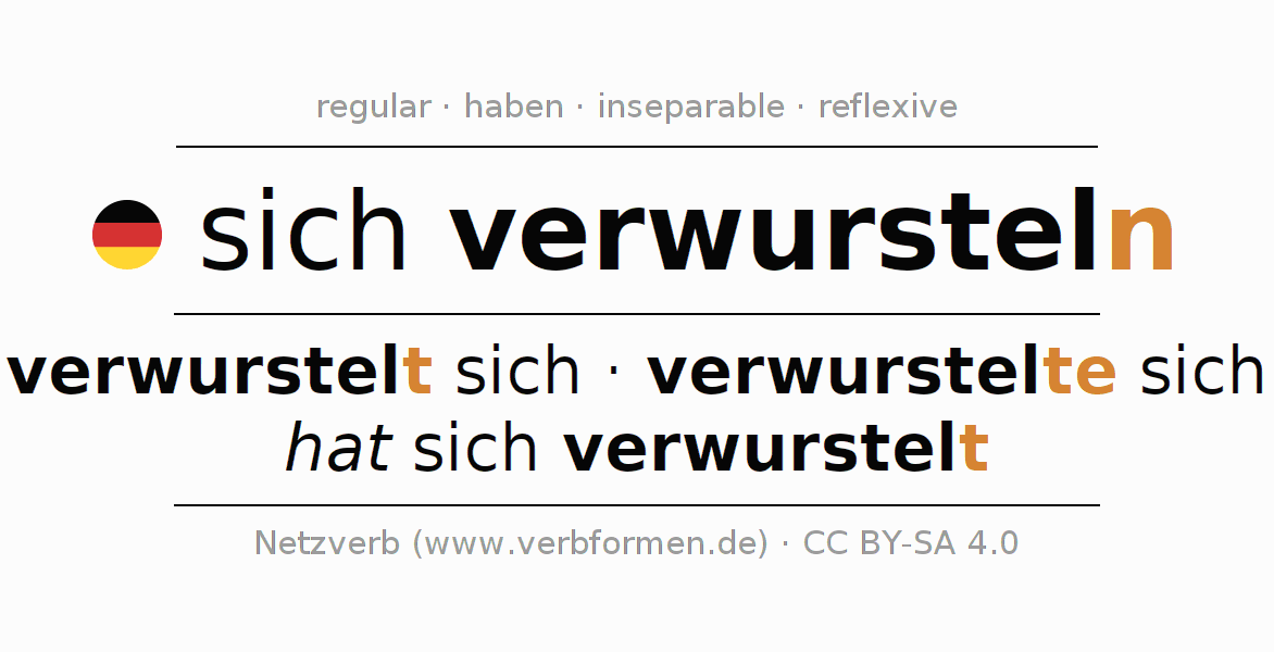 verwurstelt sich · verwurstelte sich · hat sich verwurstelt