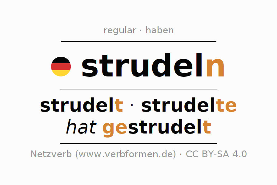Clear online presentation of the verb 'strudeln' including all verb forms. Therfore, the flection of the verb strudeln can be useful for homework, tests, exams, German lessons in school, learning German, during studies and adult education. Especially for people learning German it is essential to know the correct flection of a verb (strudelt - strudelte - hat gestrudelt).