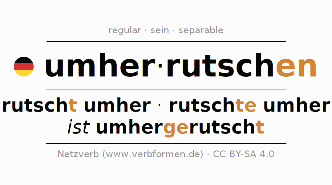 - Present: rutsch(e) (du) umher, rutschen wir umher, rutscht (ihr) umher, rutschen Sie umher