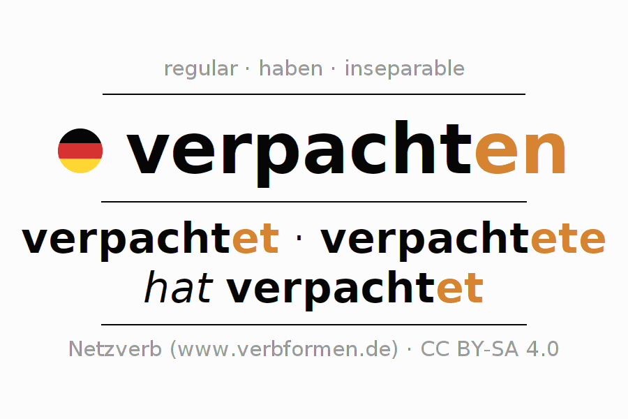 - Present: verpacht(e) (du), verpachten wir, verpachtet (ihr), verpachten Sie
