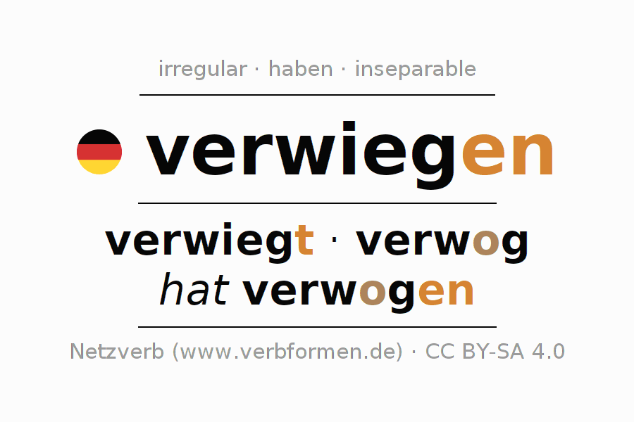 - Present: ich verwieg(e), du verwiegst, er verwiegt, wir verwiegen, ihr verwiegt, sie verwiegen