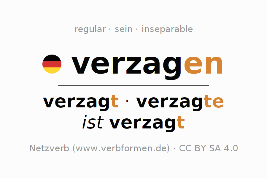 Clear online presentation of the verb 'verzagen' including all verb forms. Therfore, the flection of the verb verzagen can be useful for homework, tests, exams, German lessons in school, learning German, during studies and adult education. Especially for people learning German it is essential to know the correct flection of a verb (verzagt - verzagte - ist verzagt).