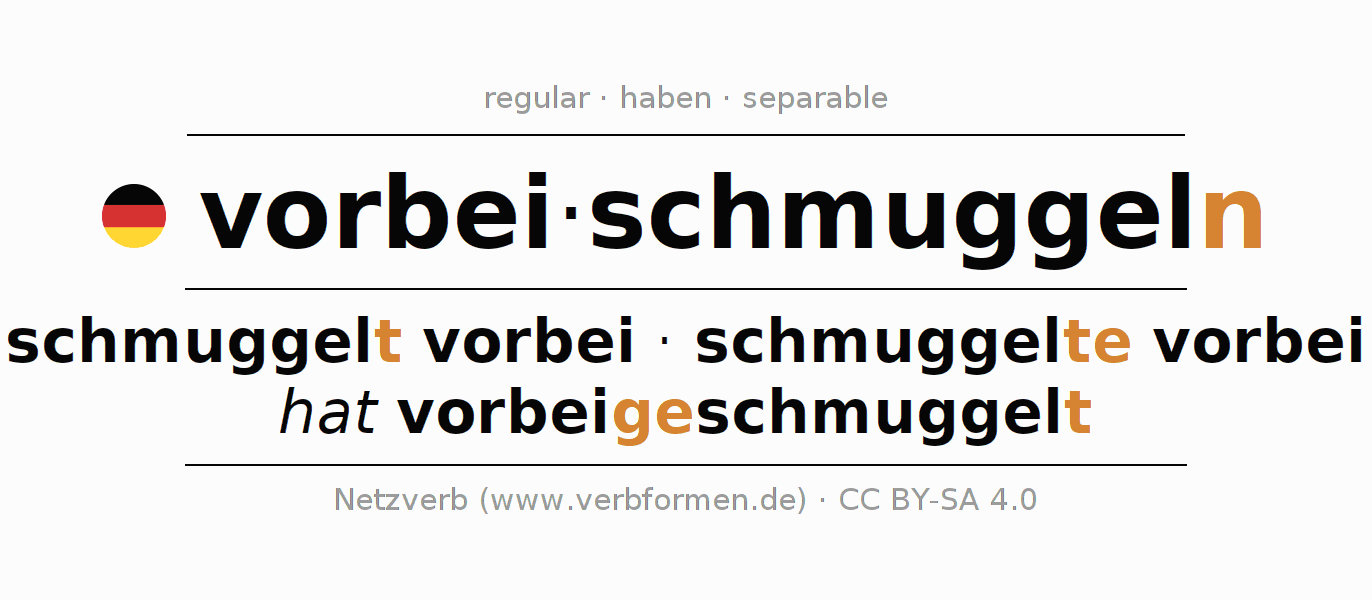 The forms of conjugation in the imperative Active present for the verb vorbeischmuggeln