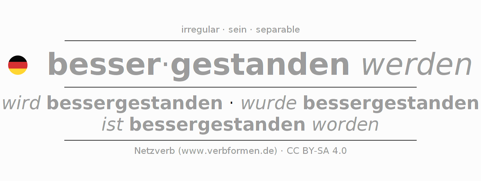 wird bessergestanden · wurde bessergestanden · ist bessergestanden worden
