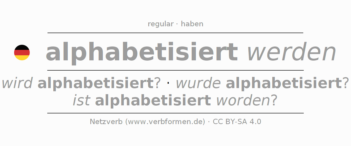 wird alphabetisiert? · wurde alphabetisiert? · ist alphabetisiert worden?
