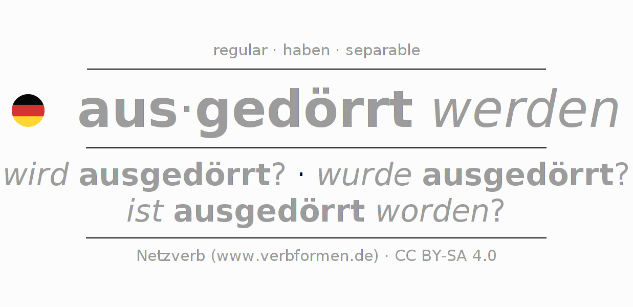 The forms of conjugation in the imperative Passive present for the verb ausdörren (hat)