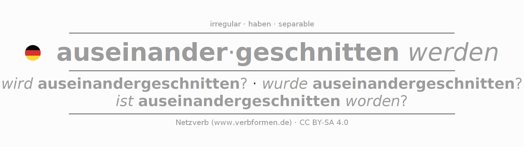 Summary of all verb tenses for auseinanderschneiden