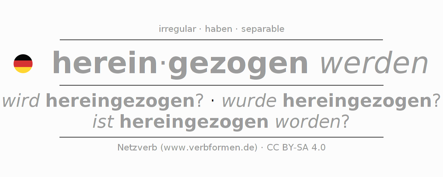 wird hereingezogen? · wurde hereingezogen? · ist hereingezogen worden?