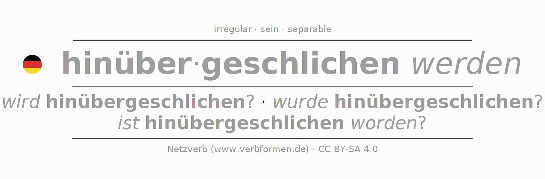 | er | wird hinübergeschlichen? | wurde hinübergeschlichen? | werde hinübergeschlichen? | würde hinübergeschlichen? | - |