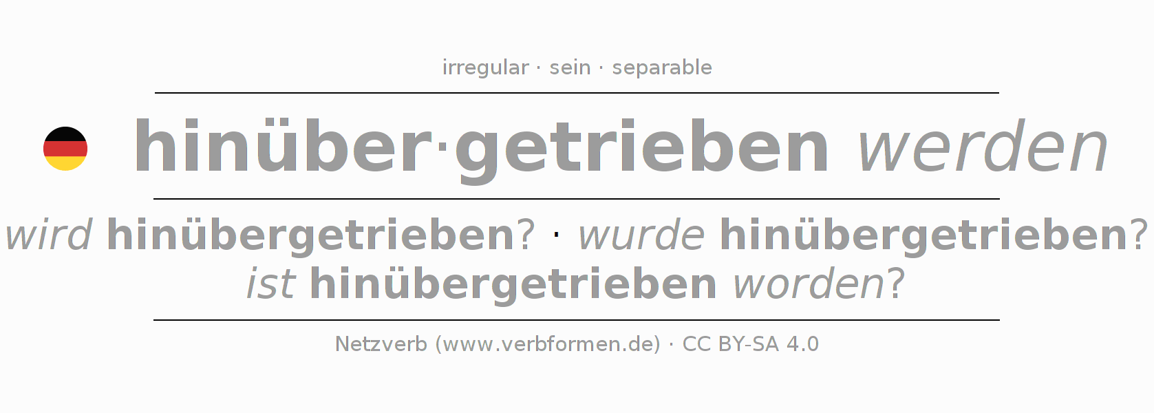 - Infinitive I: hinübergetrieben werden, hinübergetrieben zu werden