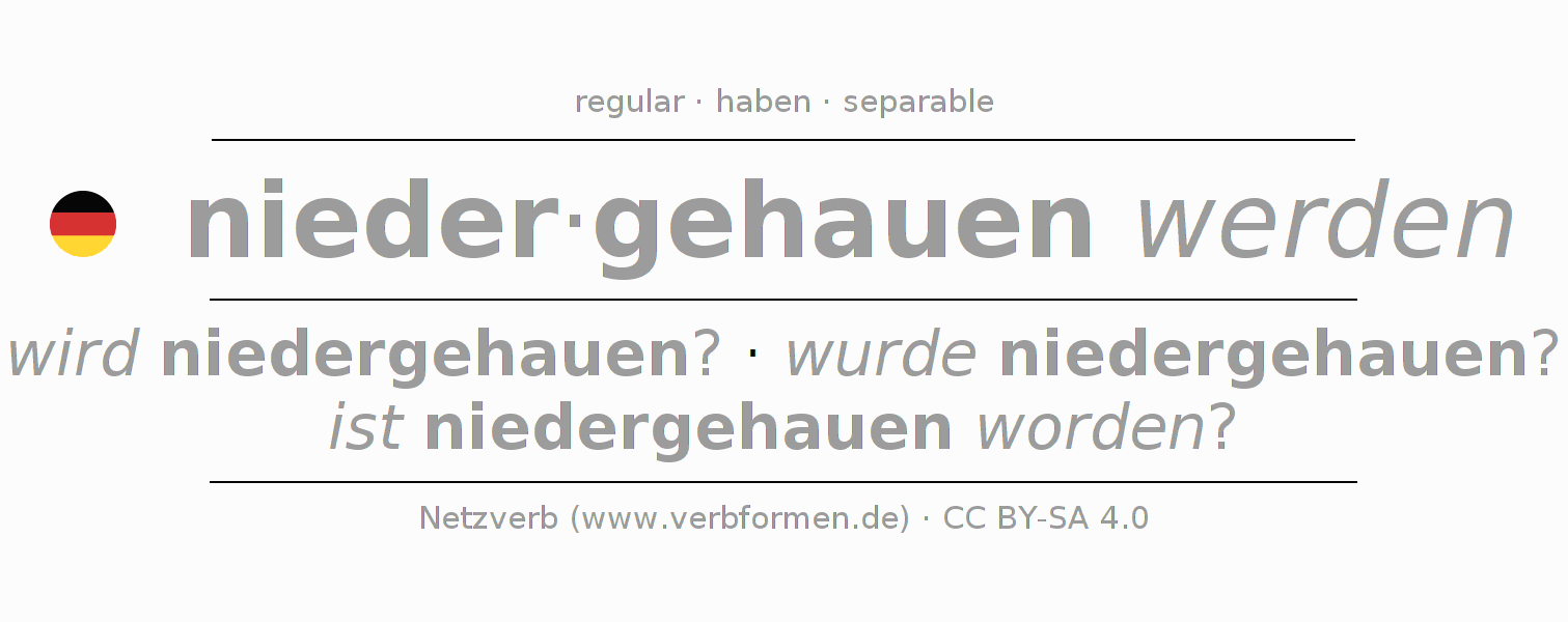 wird niedergehauen? · wurde niedergehauen? · ist niedergehauen worden?