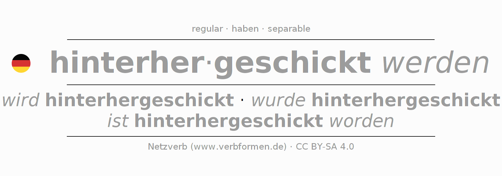wird hinterhergeschickt · wurde hinterhergeschickt · ist hinterhergeschickt worden