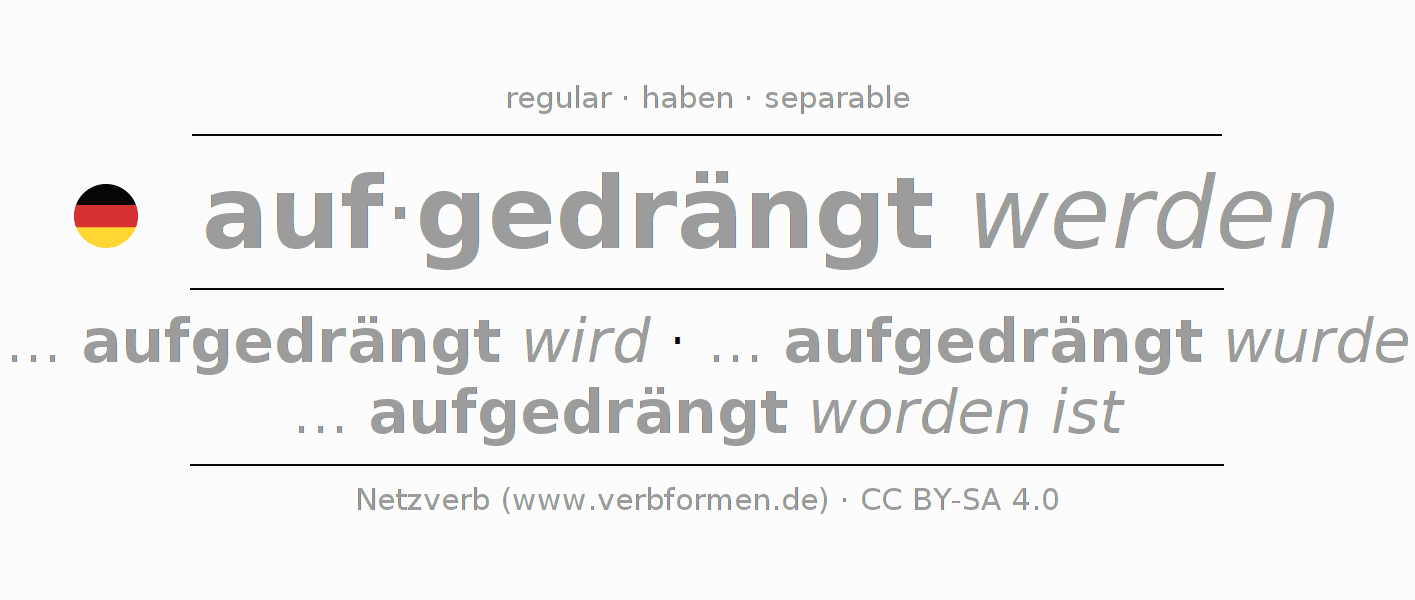 - Infinitive I: aufgedrängt werden, aufgedrängt zu werden